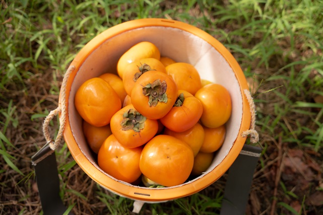 種のない紀ノ川柿や中谷早生柿、渋柿の代表品種である平核無し柿など5品種を育てています。
